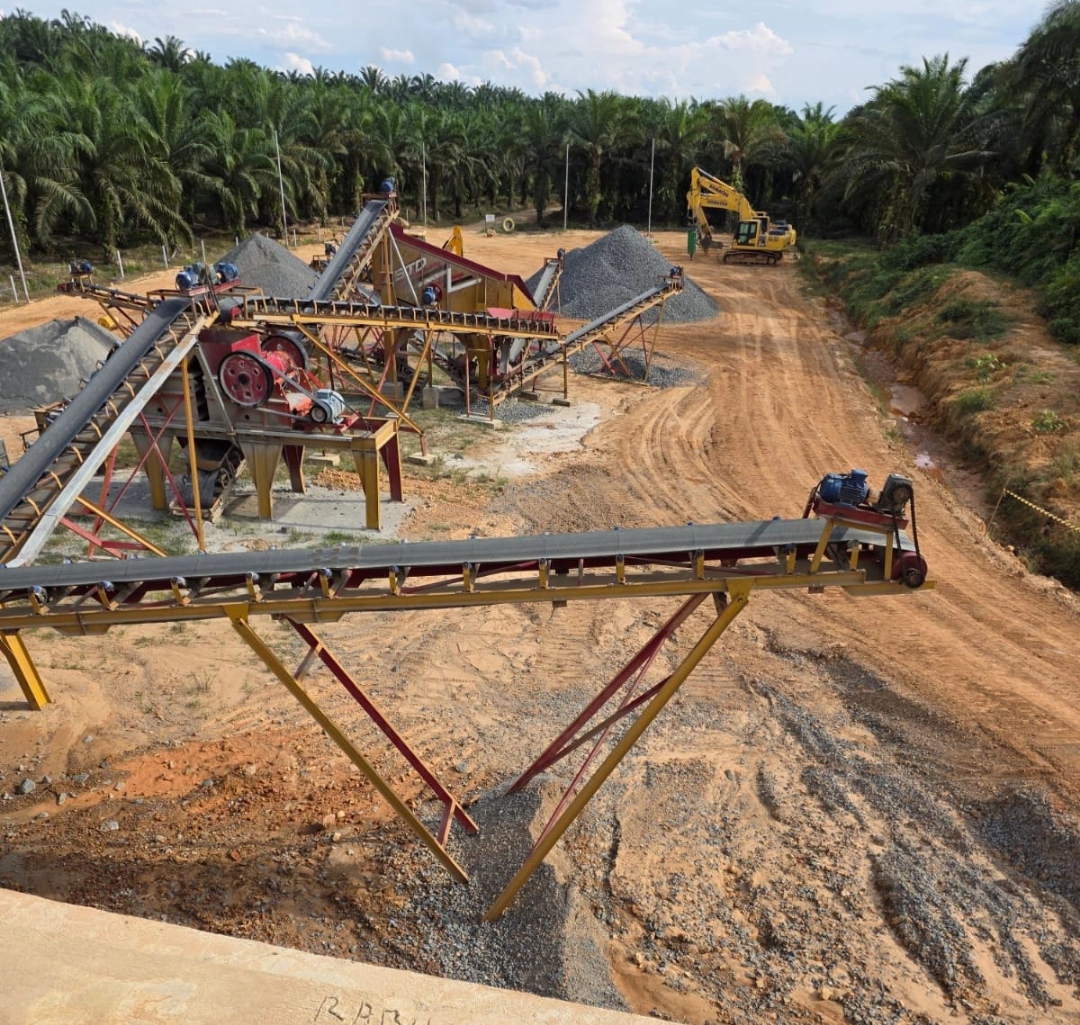 Berdasarkan hasil penelusuran tim investigasi di lapangan, aktivitas penambangan dan pengolahan material batu masih berlangsung. Di lokasi yang berada di dalam kawasan perkebunan tersebut terlihat sejumlah alat berat seperti excavator, mesin pemecah batu (stone crusher), serta rangkaian conveyor untuk memindahkan material. Tumpukan batu dalam jumlah besar tampak telah dipilah sesuai ukuran.