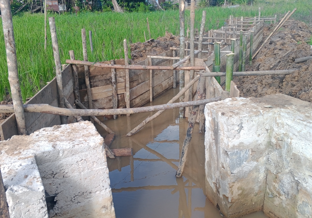 Kondisi saluran irigasi P3A di Desa Pelimping, Kecamatan Kelam Permai, Sintang, yang tengah dikerjakan. Proyek ini disorot publik karena diduga minim transparansi, ditandai dengan tidak adanya papan informasi kegiatan di lokasi pekerjaan.